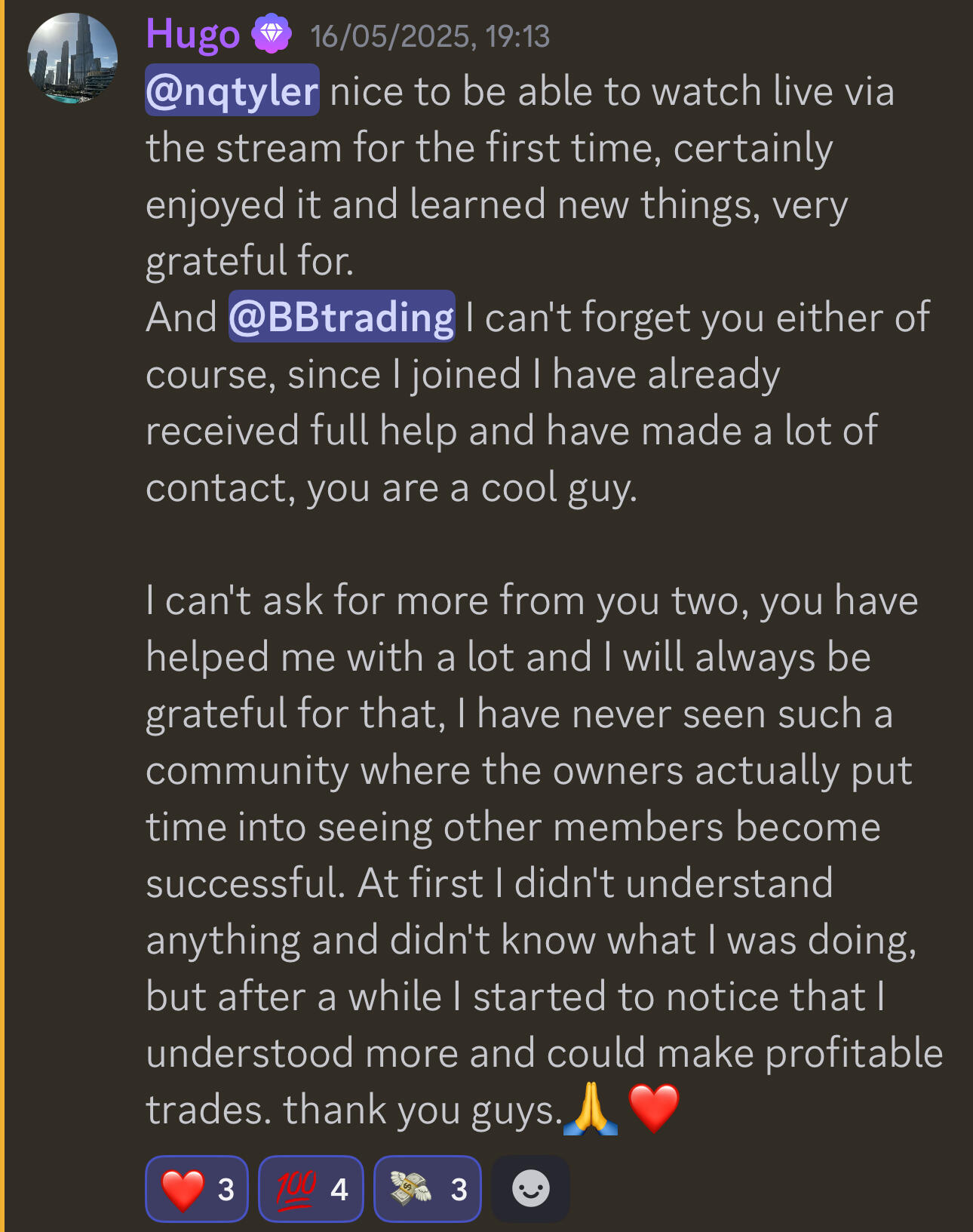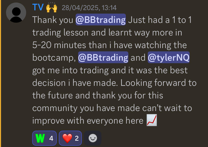 ✔️ | FREE Access to BB Trading Discord Community✔️ | 24/7 Active Chats with other likeminded Traders.✔️ | Regular Market Reviews & Trade Recaps.✔️ | In-Depth Guidance, Supportive Community.